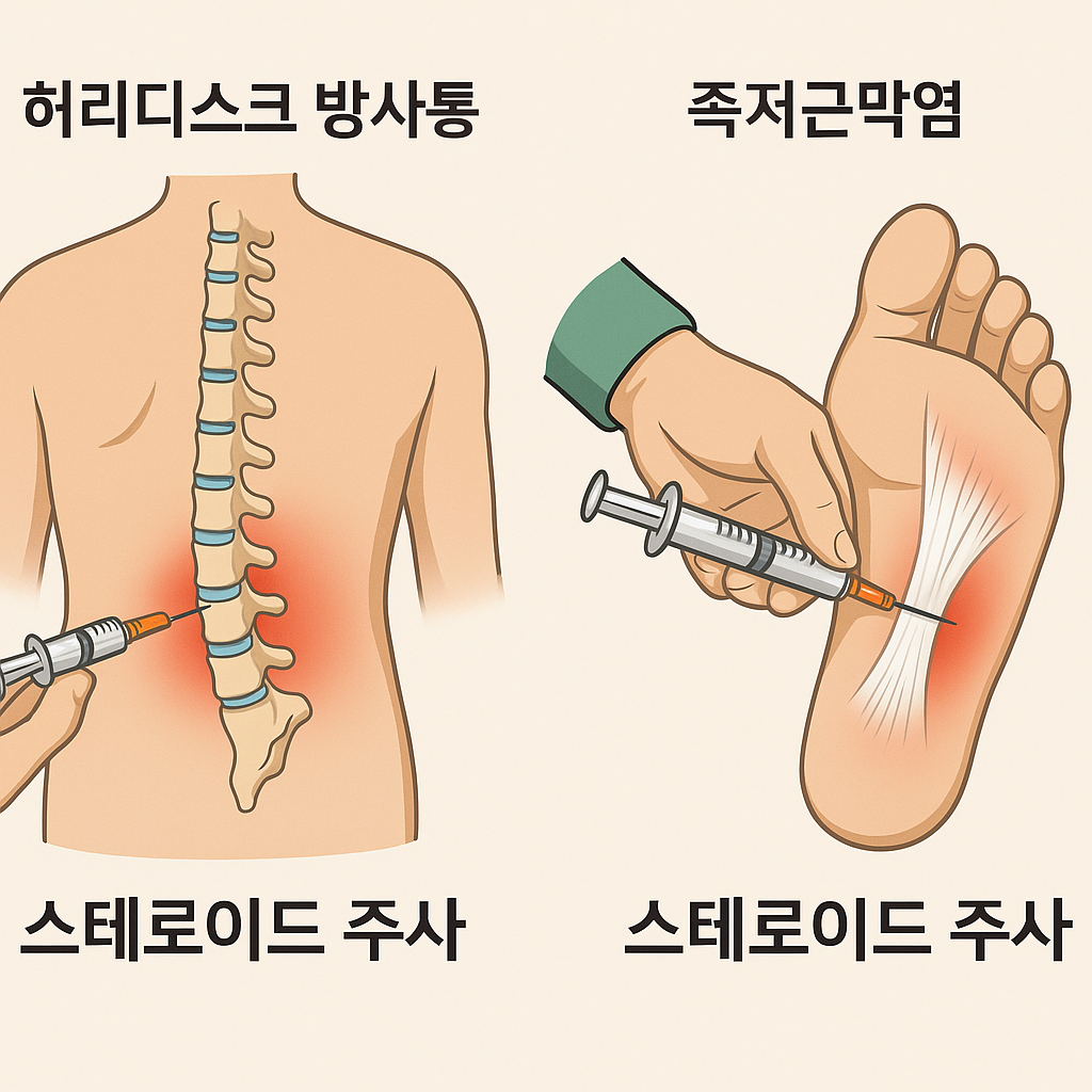수년간 허리디스크와 족저근막염으로 고생하면서 다양한 치료를 받았지만, 가장 효과적이었던 치료는 스테로이드 주사였습니다.